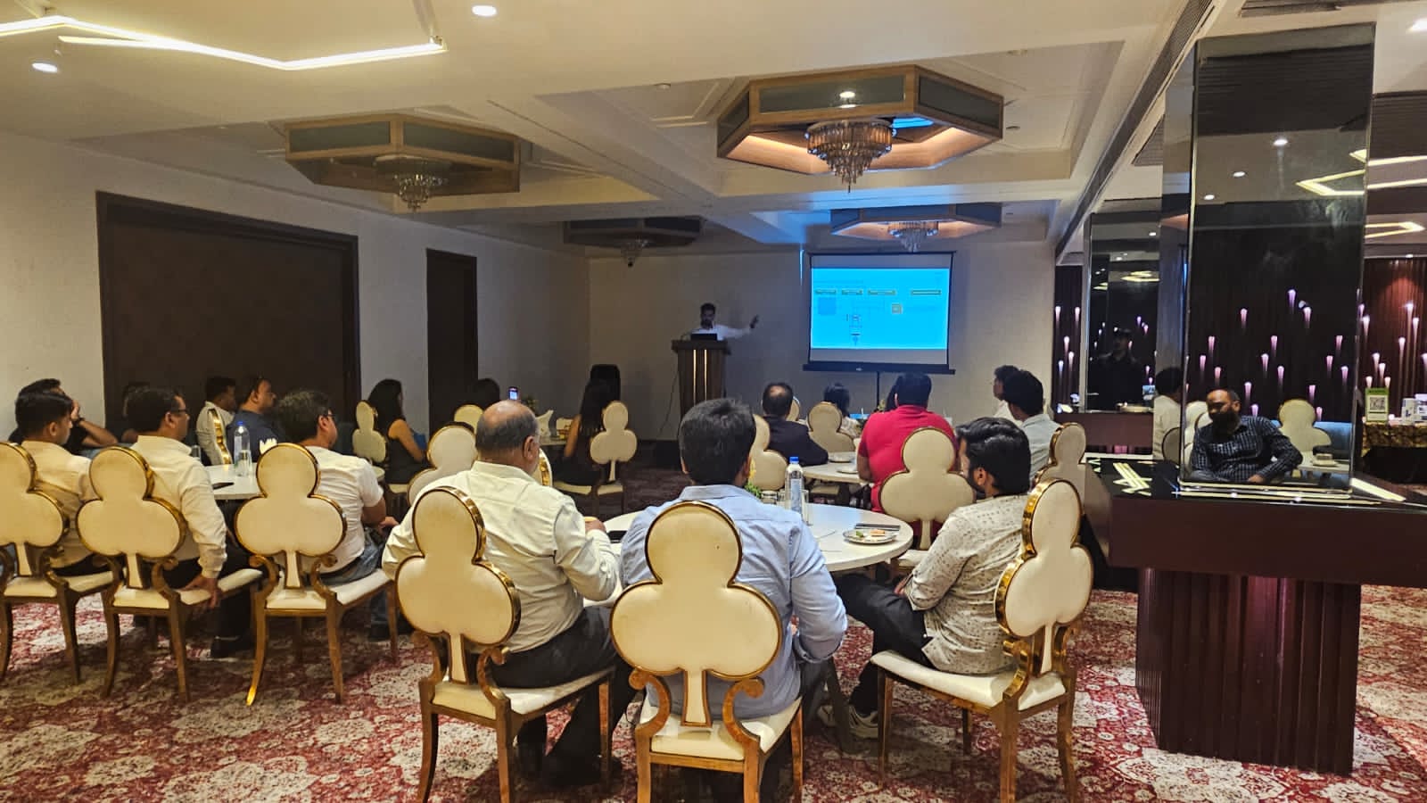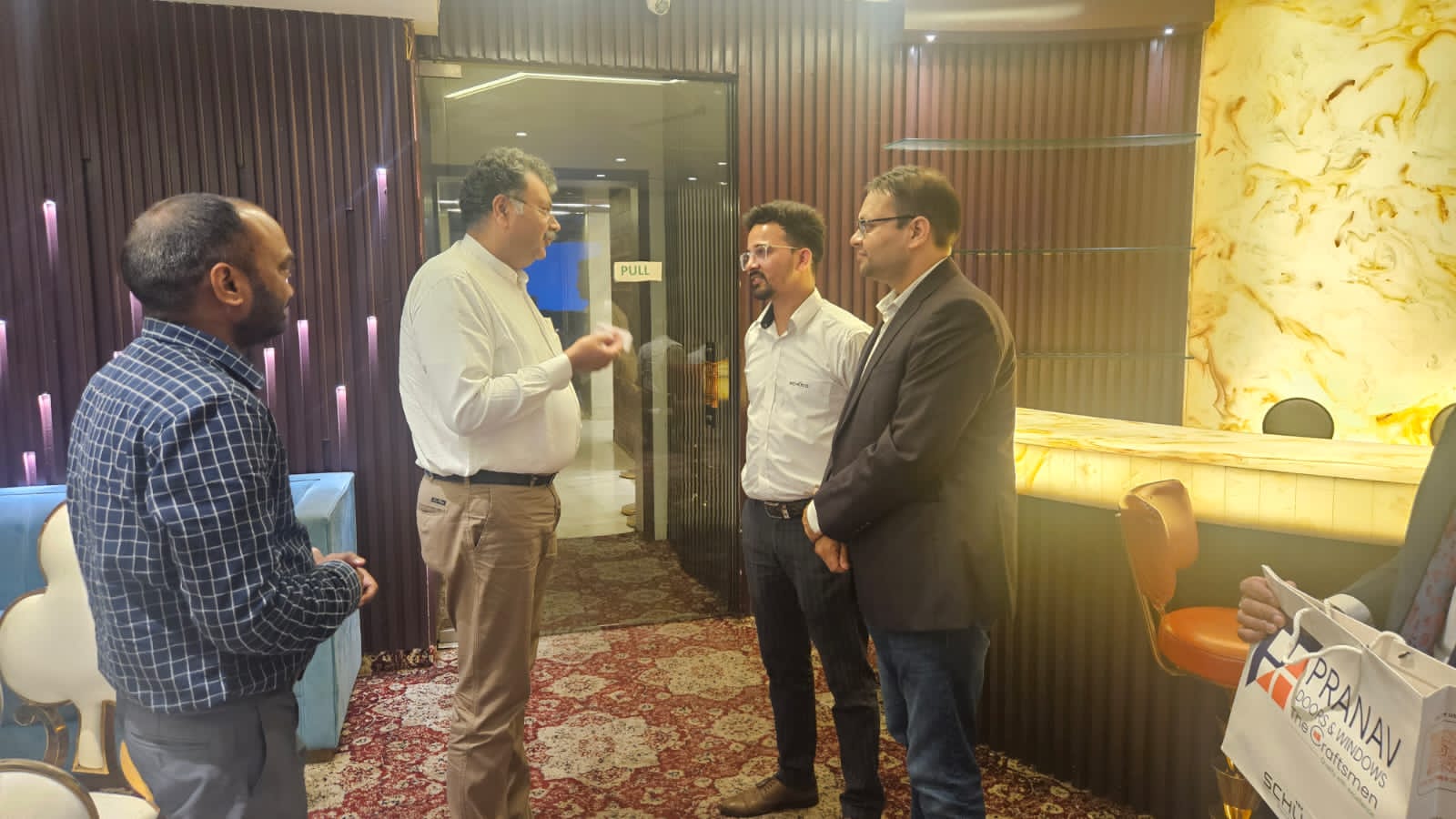 The evening witnessed the participation of 26 prominent architects from Meerut, who were welcomed into an engaging and thoughtfully curated environment. The program included a detailed presentation by Mr Shivam Sharma from Schüco, who shared insights into the brand’s philosophy, technological advancements, and an overview of its latest product series. The session provided the attendees with a deeper understanding of innovative systems, performance standards, and design possibilities relevant to contemporary architectural practice.